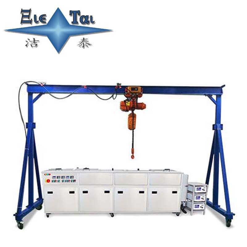 潔泰行吊式超聲波清洗機(jī)也叫電動(dòng)葫蘆多槽式超聲波清洗機(jī),一般都是按照客戶(hù)工件需求來(lái)進(jìn)行設(shè)計(jì)制造。該產(chǎn)品可以選擇超聲波清洗,超聲波漂洗,熱浸泡,壓縮空氣攪拌浸泡,烘干,化學(xué)拋光,上油等工藝或工序組合,由于采用多道清洗方式,清洗液能夠多級(jí)精密過(guò)濾,可以有效保證產(chǎn)品的清潔度,按客戶(hù)要求設(shè)計(jì)洗凈流程。